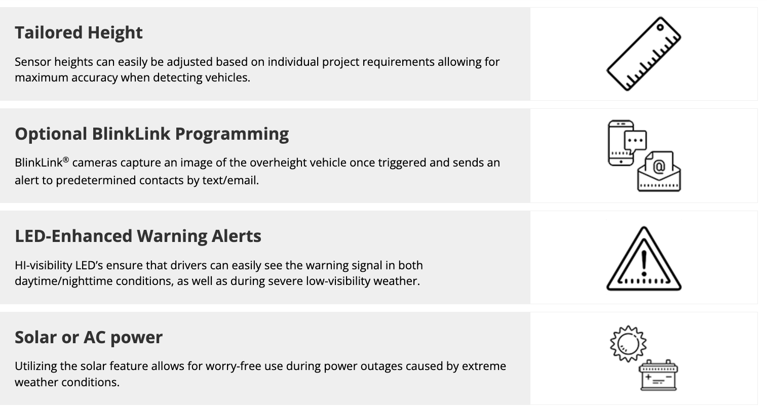 With the most reliable technology in the industry, this system has proven time-and-time again to prevent severe damage to both low roadway structures and vehicles.